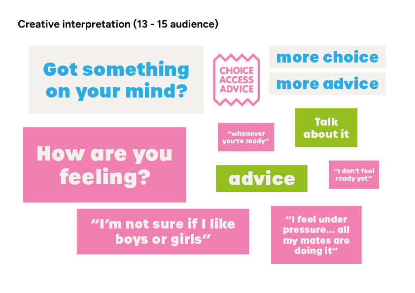 I first prepared mood boards and used a three-colour palette recognising the broader Derbyshire Sexual Health Matters brand identity.