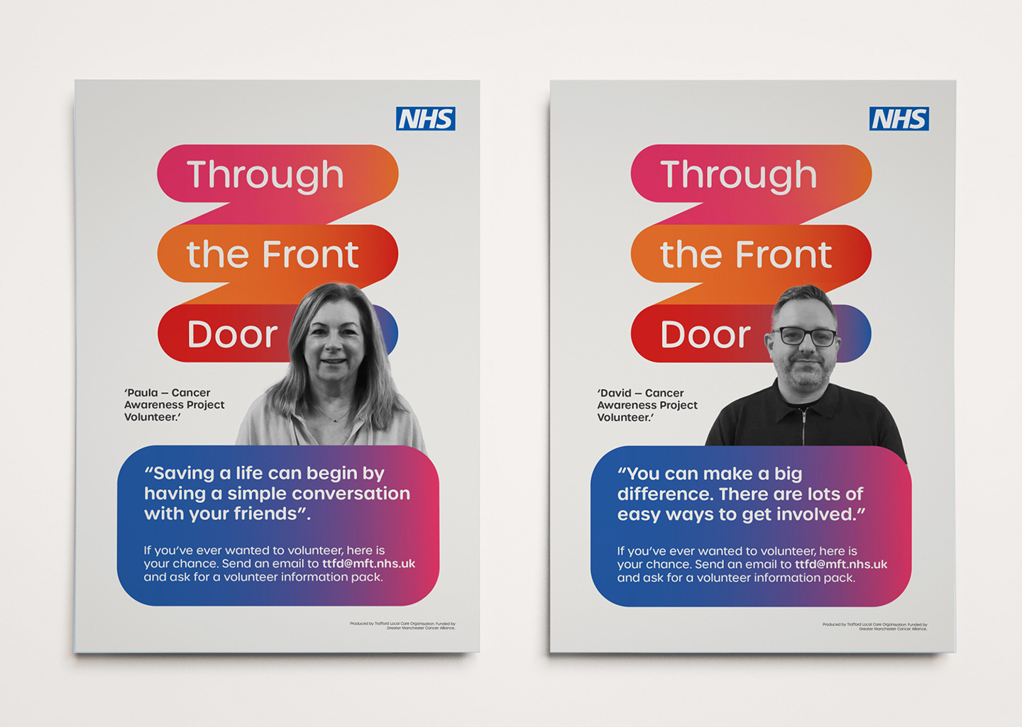 A visual identity was created to help recruit volunteers and gather insight for multiple hyper-local resources. These include the Partington Mobile Breast Screening Unit marketing, which has helped substantially increase the uptake of Breast Cancer Screening invitations in two neighbourhoods.